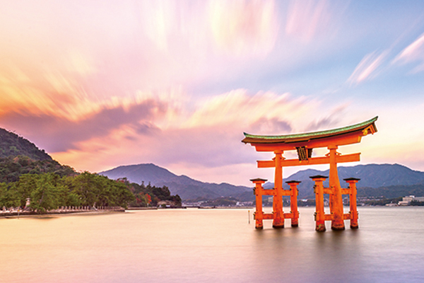【宮島、嚴島神社】日本三大景之一,聳立在海上的朱紅色大鳥居(神社牌坊),正是宮島的象徵與地標,迎面而建的宮殿式建築乃集日本平安時代貴族住宅之精髓,保留著平安時代優雅華麗卻不失莊嚴的氣息,並在1996年被登錄為世界文化遺產。