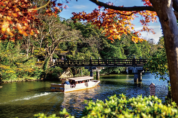 【松江堀川遊覽船】松江城的初代城主築城之時,挖掘了許多水道,這些水道既有經濟價值也有護衛城堡的功能,搭乘崛川遊船欣賞有400多年歷史的松江城,是來到松江城最特別的旅遊體驗。本次特別安排搭乘遊覽船,沿途會穿過17座橋樑,其中有4座橋的橋板非常低,經過這些橋時,屋形船的船篷就會下降,遊客們也必須跟著把頭低下,才有辦法穿行而過。請邊聽船伕吟唱日本歌謠邊欣賞美景,體驗這項只在松江城才有的有趣經驗。