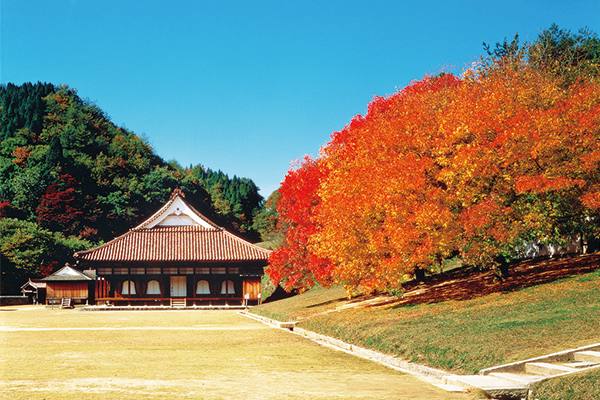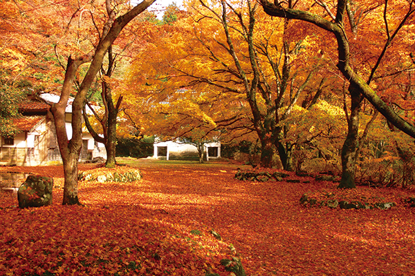 【紅葉名所〜特別史跡-舊閑谷學校】 1670年由岡山藩主池田光政所創立,是日本第一所公立學校。在這裡,不論是武士還是平民都有平等受教育的機會,這所平民學校的誕生在當時嚴格的階級社會中,可以說具有劃時代的意義。現在這裡已被指定為國家特別歷史遺跡,特別是講堂已成為日本學校建築物的唯一國寶。包括石牆在內的全部建築都被指定為重要文化遺產。所有的屋頂都是紅色的備前瓦,與周圍的自然景觀十分相融。境內兩棵楷樹為1915年由中國山東省孔子廟旁帶回的種子所種植而成,ㄧ到秋季,楷樹葉子開始變色,優美景致也成為人氣的賞楓景點。