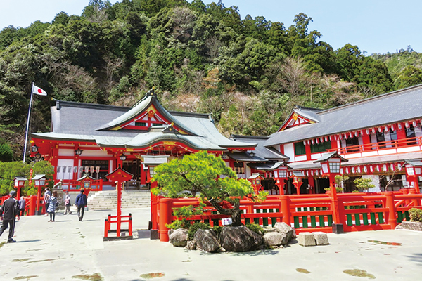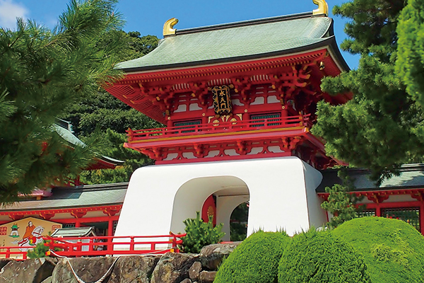 【赤間神宮】為了祭祀年僅8歲就因在源平之戰戰敗被迫投水自盡的安德天皇所建。因有平家一門之墓,赤間神宮的造型也與一般神社不同。這裡也是有名的怪談故事「無耳芳一」的舞台,境內還存有「芳一堂」。