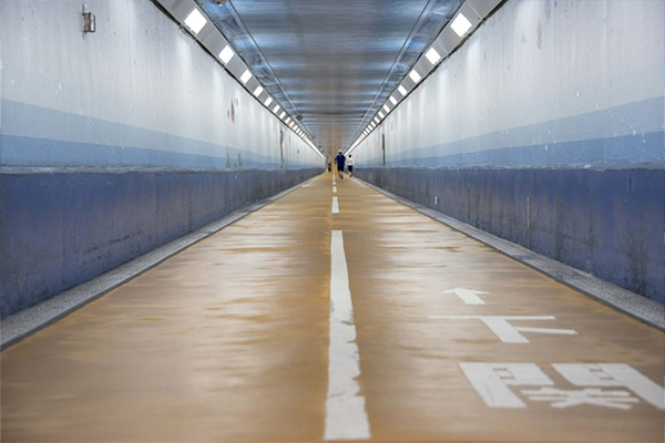 【關門海峽人行海底步道】連接關門海峽,全長780公尺的步行者專用海底隧道。海底延伸的隧道分為上下兩層,上面是車道、下面是可步行通過的步道。步行隧道入口設有電梯,門司市方面的是入口地下60公尺,下關市方面則是地下55公尺。隧道中間有福岡縣與山口縣邊境的標誌,是著名且罕見的海底邊境。步行隧道兩側的電梯處可蓋紀念章,回答旅遊資訊處提供的問券即可得到「關門TOPPA!記念證」。