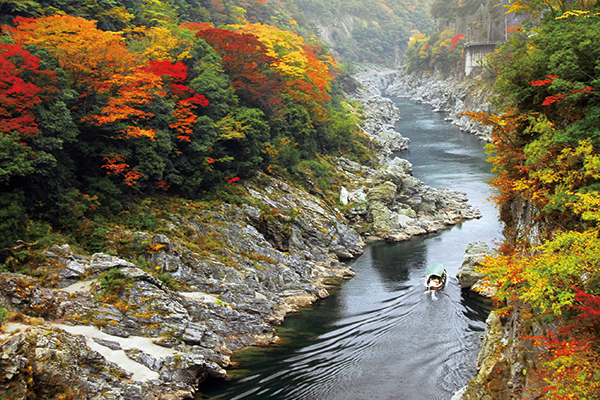 【大步危溪谷遊船】素有日本三大秘境美稱,因吉野川貫川四國山脈而切割出大步危峽谷及小步危峽谷而形成天然的秘境溪谷,因長年歲月的洗禮而形成獨特景緻,「步危」是用來形容大步走也危險小步走也危險的山崖之意,而峭立的岩石像刀砍斧削一般,因而有大步危之稱。在高知與大步危之間的山谷風光相當壯麗,坐普通車可以好整以暇地把沿途峽谷與山櫻景觀慢慢看個夠,倒也是種享受,我們特別安排各位貴賓從聳立陡峭的懸崖之間乘坐遊覽船沿途遍佈櫻花、岩杜鵑、楓樹紅葉等四季時令花卉更是將峽谷炫染得五彩繽紛更是透過另一個角度欣賞大步危溪谷的另一種美。