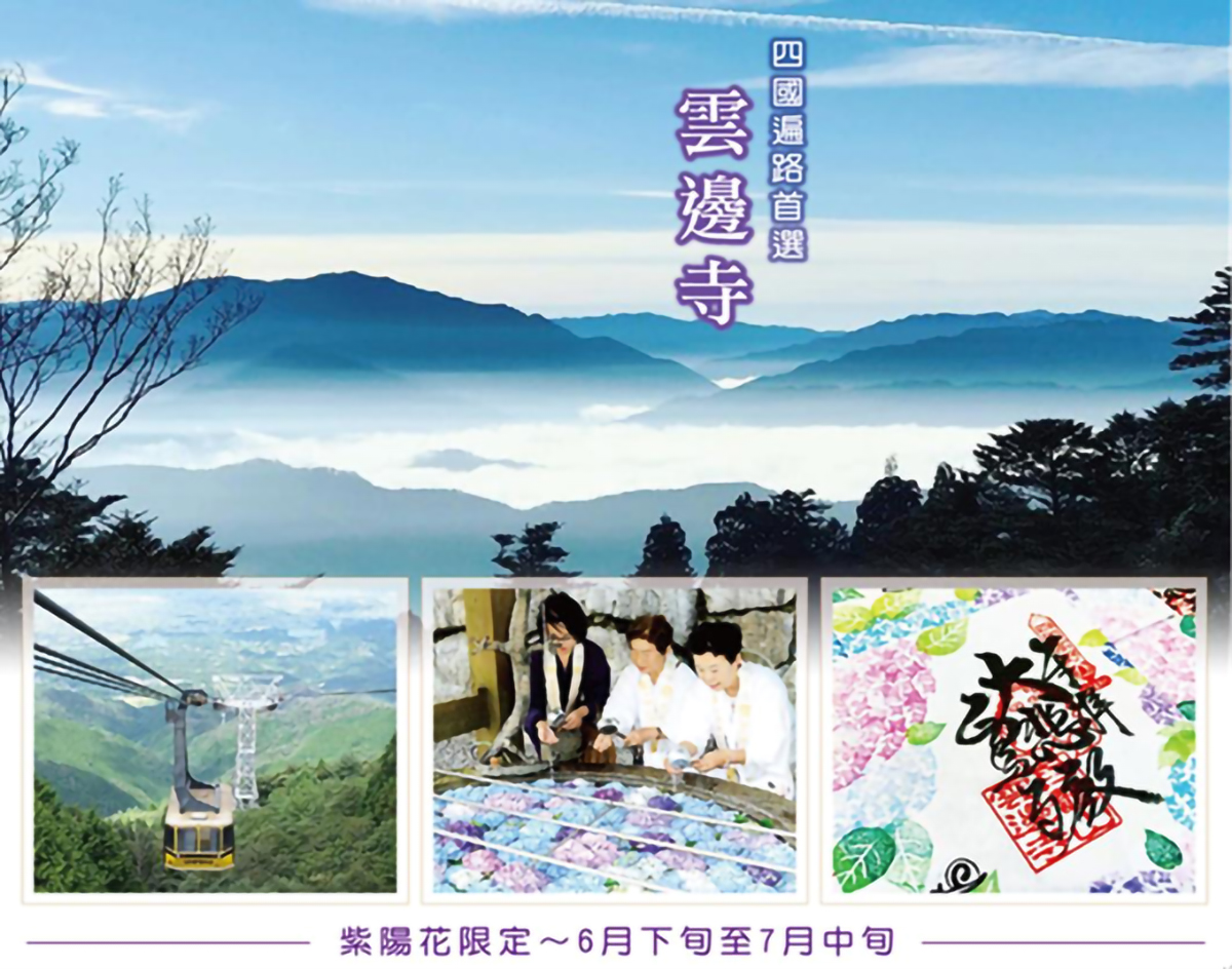 【66 番札所~雲邊寺】為四國遍路八十八番所的第六十六番所,也是所有遍路中地理位置最高的。正殿位於標高 911m 的山頂附近需要攀登 4.3km 的山路,被稱為遍路巡禮中最大的難關,祭拜主神千手觀音,參道旁矗立羅漢雕像,從最高處的毘沙門天王的雕像頂樓可眺望瀨戶內海美麗的風光。
