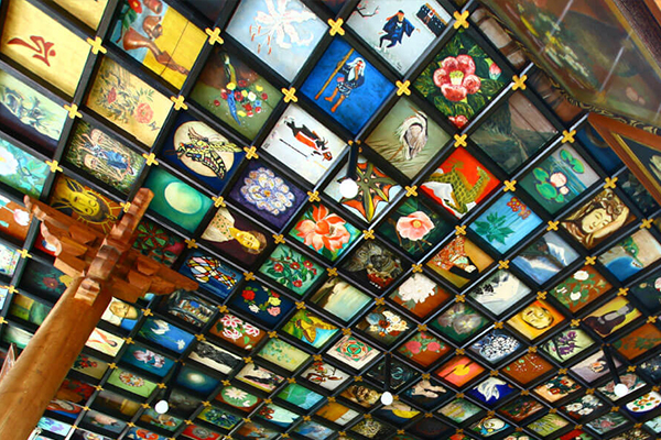 【37番札所~岩本寺】供奉五座菩薩的寺廟、本堂天花板上的天井繪非常值得一看。繪畫種類繁多,包括日本畫、水彩畫、水墨畫、拼貼畫等,而且主題包羅萬象,除了傳統的佛像和花卉外,甚至還有瑪麗蓮夢露喔!