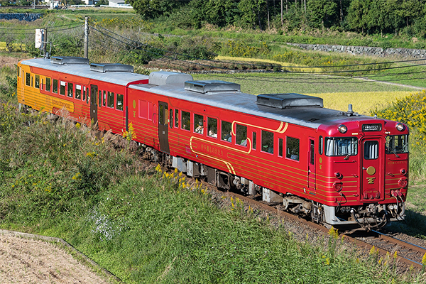 【伊予灘物語鐵道】伊予灘物語列車別出心裁的車身設計,以伊予灘夕陽為連想的漸層暗紅色系,加上活力十足的黃金色基調搭配,同時帶有懷舊與現代感的特殊風情,讓人看了眼睛為之一亮。坐在舒適的車廂中,眺望只屬於愛媛的海岸線,海天一色的景緻,一望無際的伊予灘,沿途居民的熱情歡迎,邊享用著美味的咖啡點心,沉浸在浪漫氛圍中,留下屬於自己的感動鐵道之旅!
